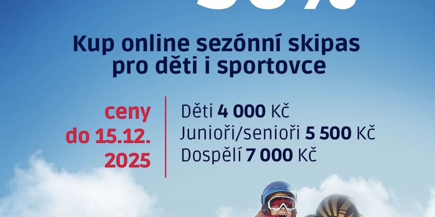 Předprodej sezónních skipasů zima 2025/26 zahájen 1.11.2025. Více v novinkách...