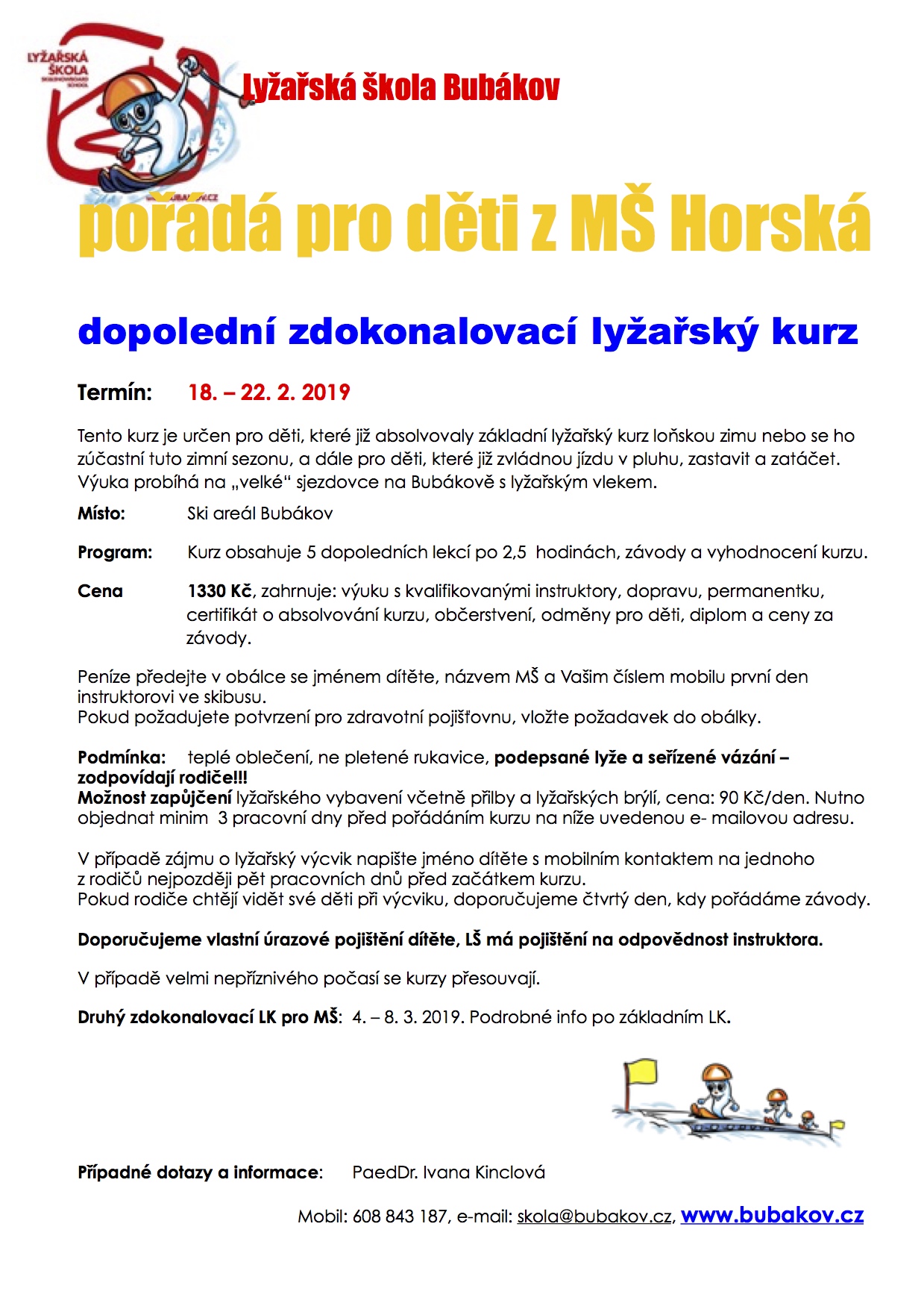 Dopolední zdokonalovací lyžařský kurz pro děti z MŠ Horská