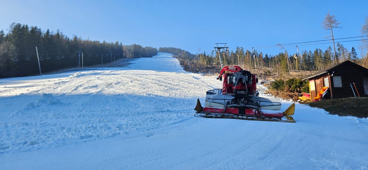 Těšíme se na vás, Skiareál zatím není propojen, nelze se dosta po sněhu z Bubákova do Herlíkovice a obráceně.